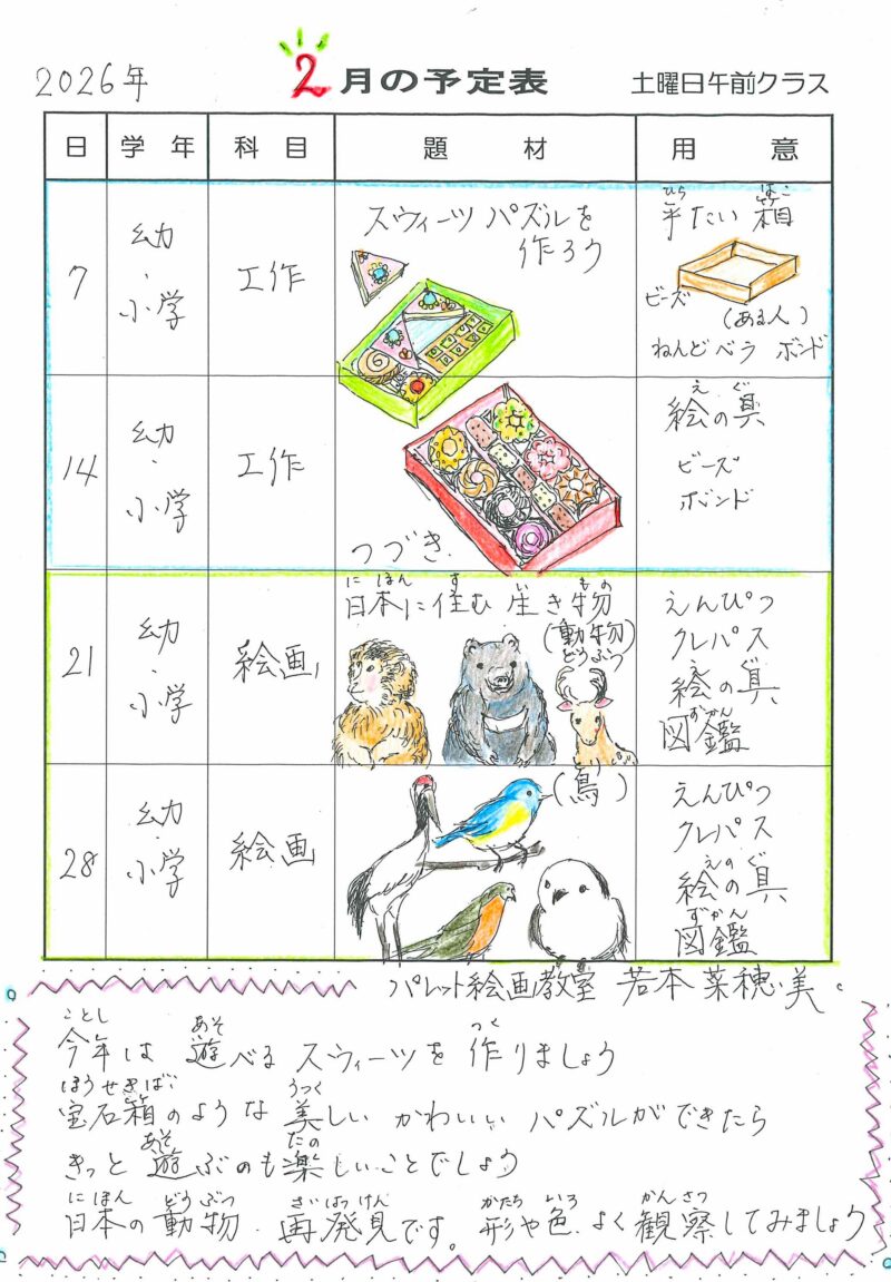 午前クラスはスイーツパズル  粘土で工作と動物描く 午後クラスは黒を描こう